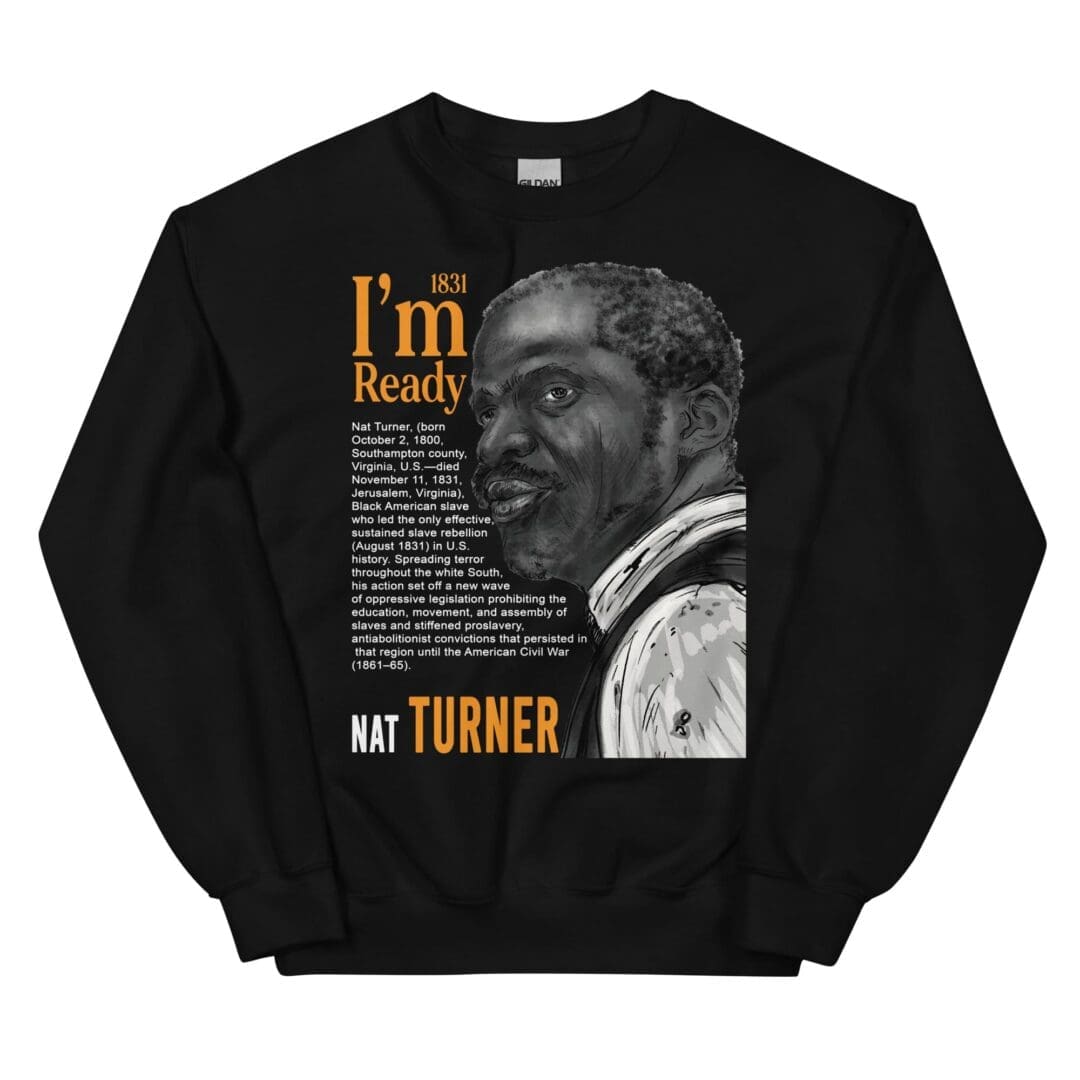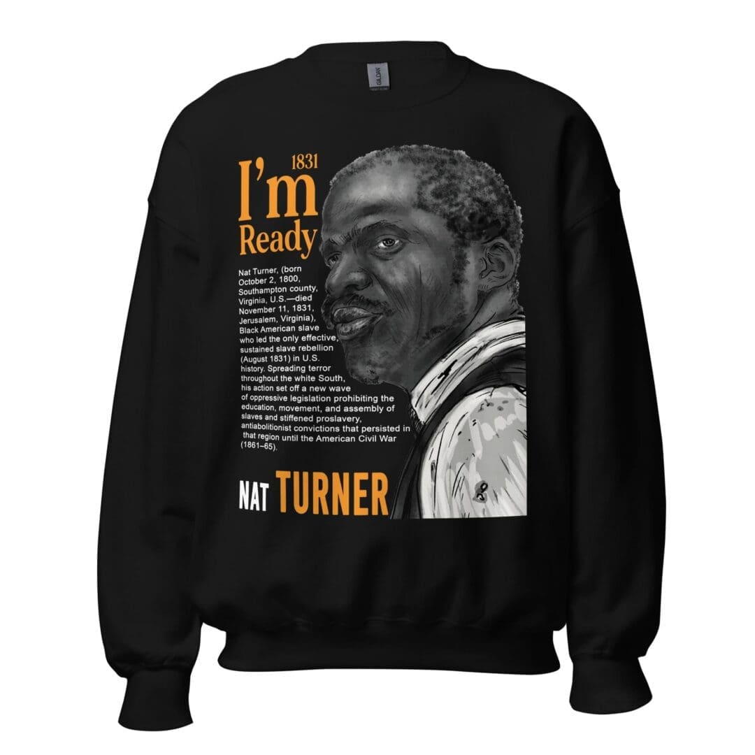 Embrace the spirit of Black American heroism with our Nat Turner-inspired crewneck sweatshirt. This long-sleeve garment is not just a fashion statement; it’s a tribute to a pivotal figure in Black History. Crafted for those who appreciate the rich tapestry of African American heritage, this sweatshirt symbolizes strength and resilience. Each stitch carries the legacy of Nat Turner, making it more than just a piece of clothing, but a wearable testament to a courageous legacy.