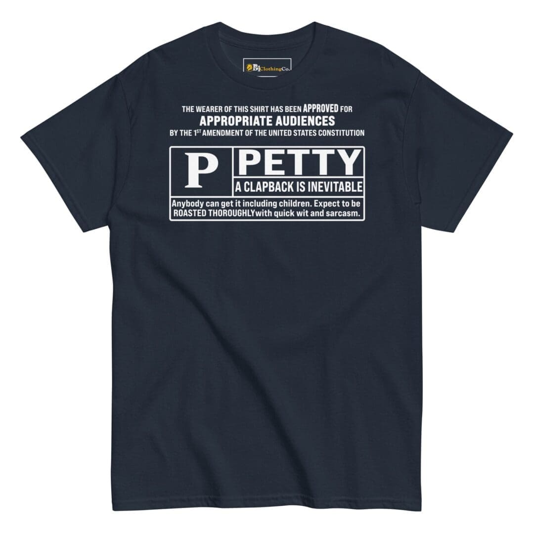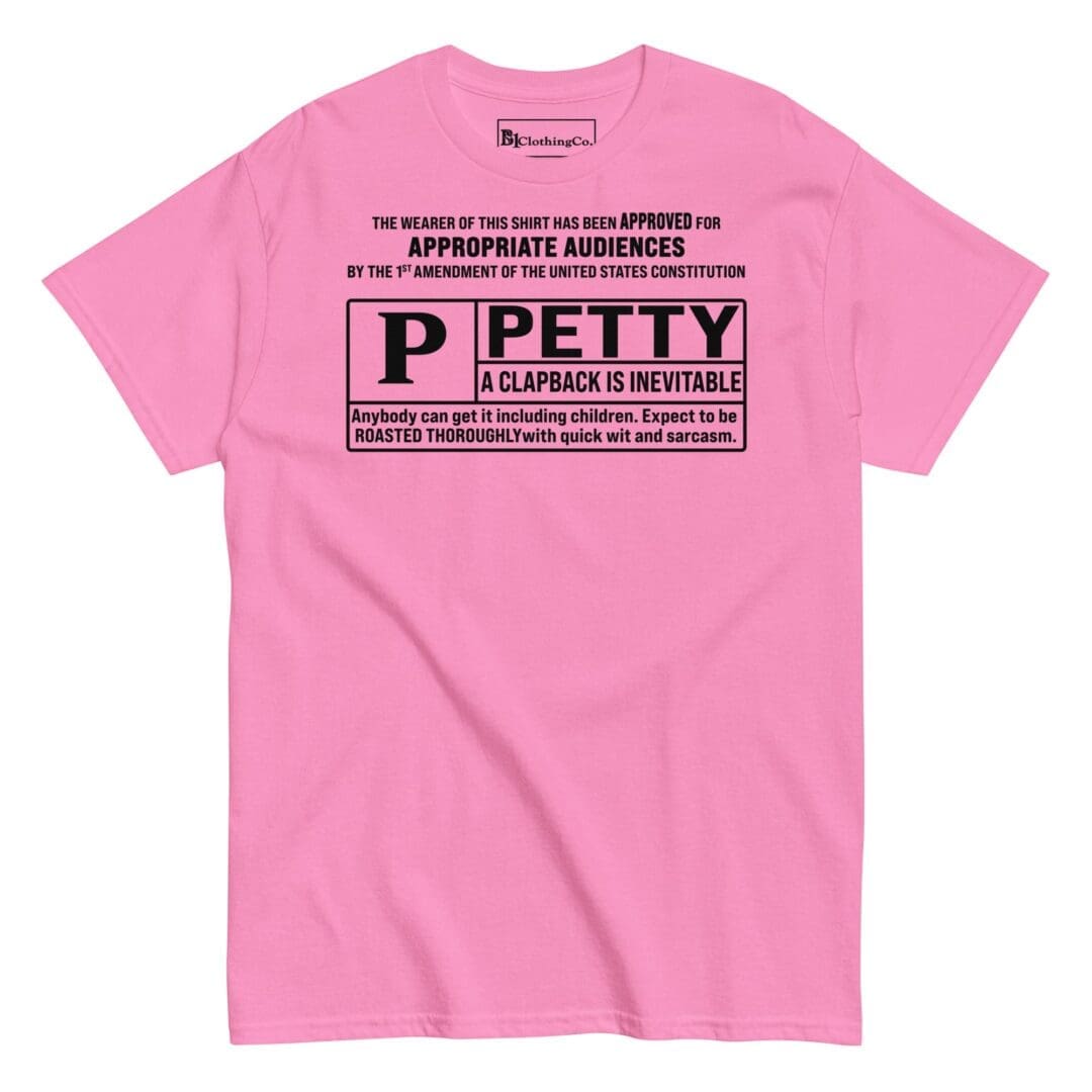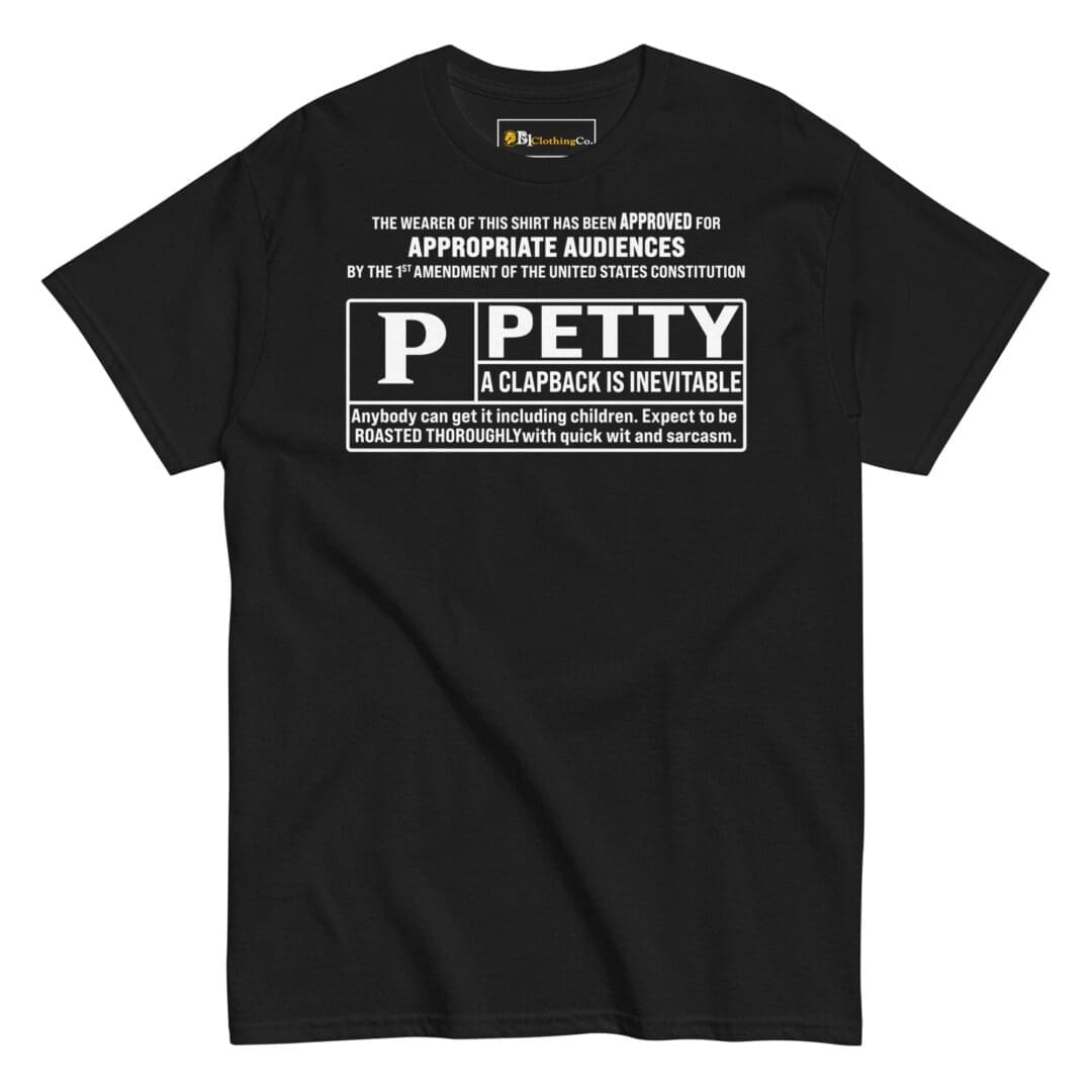 Express yourself with humor and style! This tee is not just about comfort and fashion; it’s also a conversation starter. With keywords like “Rated Petty,” “funny quote shirt,” and “sassy t-shirt,” it’s clear that our classic tee has a playful side. Whether you want to make a statement or simply put a smile on someone’s face, our tee has got you covered.